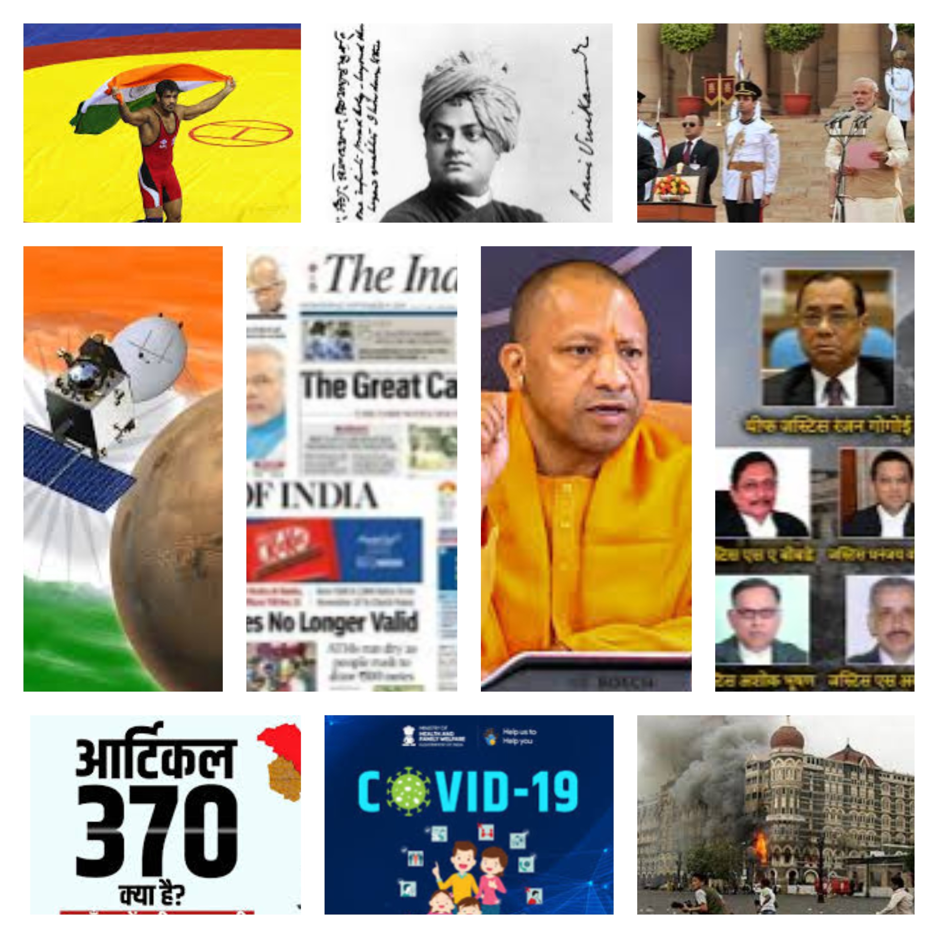 मुंबई में आतंकवादी हमला। लंदन ओलंपिक में भारत ने 6 पदक जीते। स्वामी विवेकानंद 150 जन्म शती। भाजपा ने पूर्ण बहुमत से केंद्र में सरकार बनाई, नरेंद्र मोदी बने प्रधानमंत्री। मंगल मिशन यात्रा और ऊरी में आंतकवादी हमला। दिल्ली विधानसभा चुनाव में आम आदमी पार्टी की विजय, निति आयोग ने योजना आयोग का स्थान लिया।500 और 1000 के नोट बंद हुए।योगी आदित्यनाथ उत्तर प्रदेश के मुख्यमंत्री बने।कावेरी जल विवाद । पुलवामा में आतंकी हमला। अनुच्छेद 370 हटाई गई। रामजन्म भूमि विवाद पर सर्वोच्च न्यायलय का फैसला। कोविड-19 का हाहाकार। राष्ट्रव्यापी लॉकडाउन।