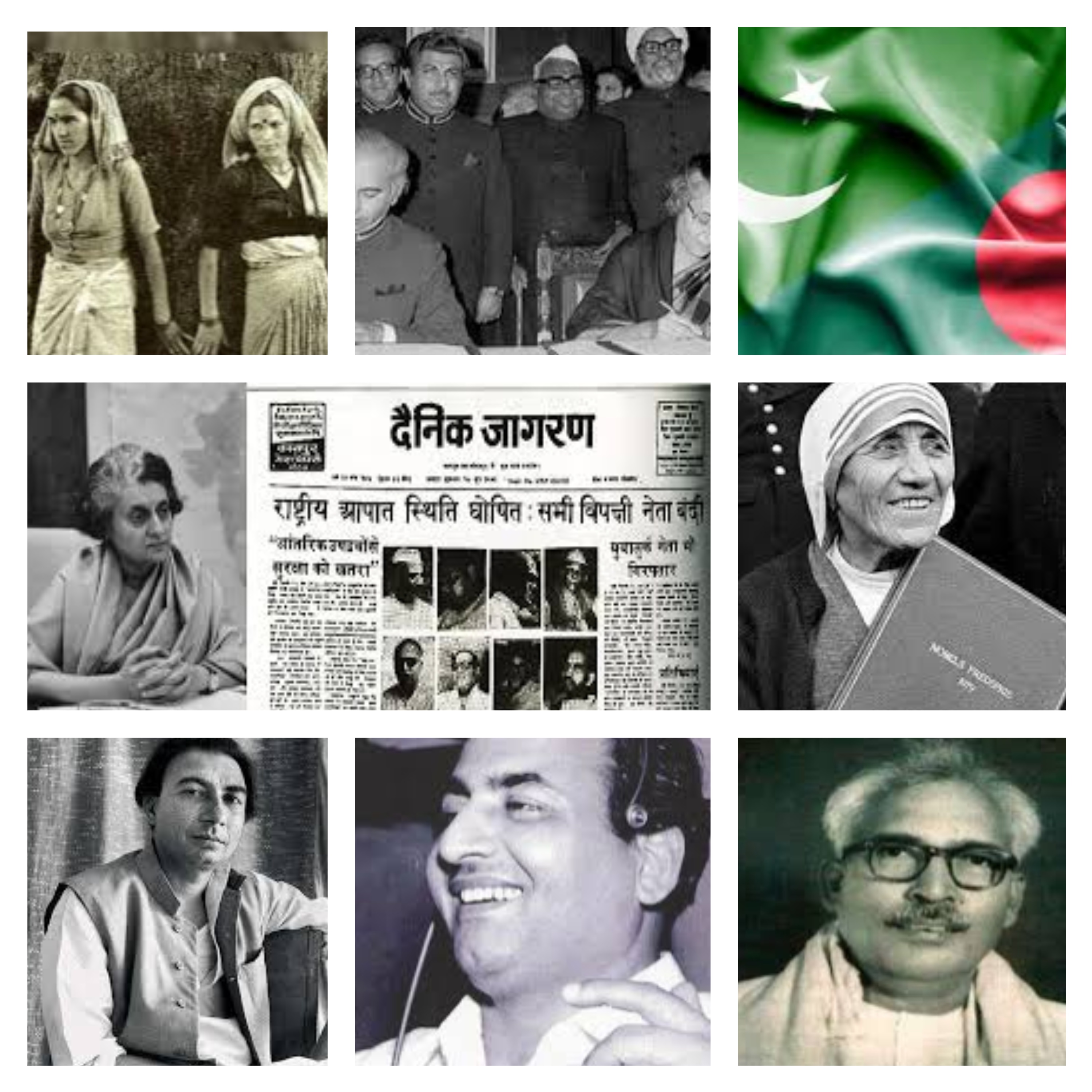 बांग्लादेश पाकिस्तान से स्वतंत्र । शिमला समझौता । चिपको आंदोलन । भारत का पहला परमाणु परीक्षण ‘स्मालिंग बुद्धा’। आपातकाल। भारत के प्रथम उपग्रह आर्यभट्ट का प्रेक्षेपण। संविधान संशोधन कर धर्मनिरपेक्ष शब्द सम्मिलित, 42वां संशोधन। आपातकाल समाप्त। जनता पार्टी ने आम चुनाव जीता। प्रथम टेस्ट ट्यूब बेबी लुइस ब्राउन का जन्म। एयर इंडिया 747 क्रैश । मदर टेरिसा को शांति का नोबल पुरस्कार । मंडल कमिशन स्थापित । हजारी प्रसाद द्विवेदी का निधन । मेजर ध्यानचंद और जयप्रकाश नारायण का निधन । भारतीय जनता पार्टी का गठन। संजय गांधी का प्लेन दुर्घटना में निधन। भारतीय हॉकी टीम ने मास्को ओलंपिक में स्वर्ण पदक जीता।मोहम्मद रफी और साहिर लुधियानवी का निधन